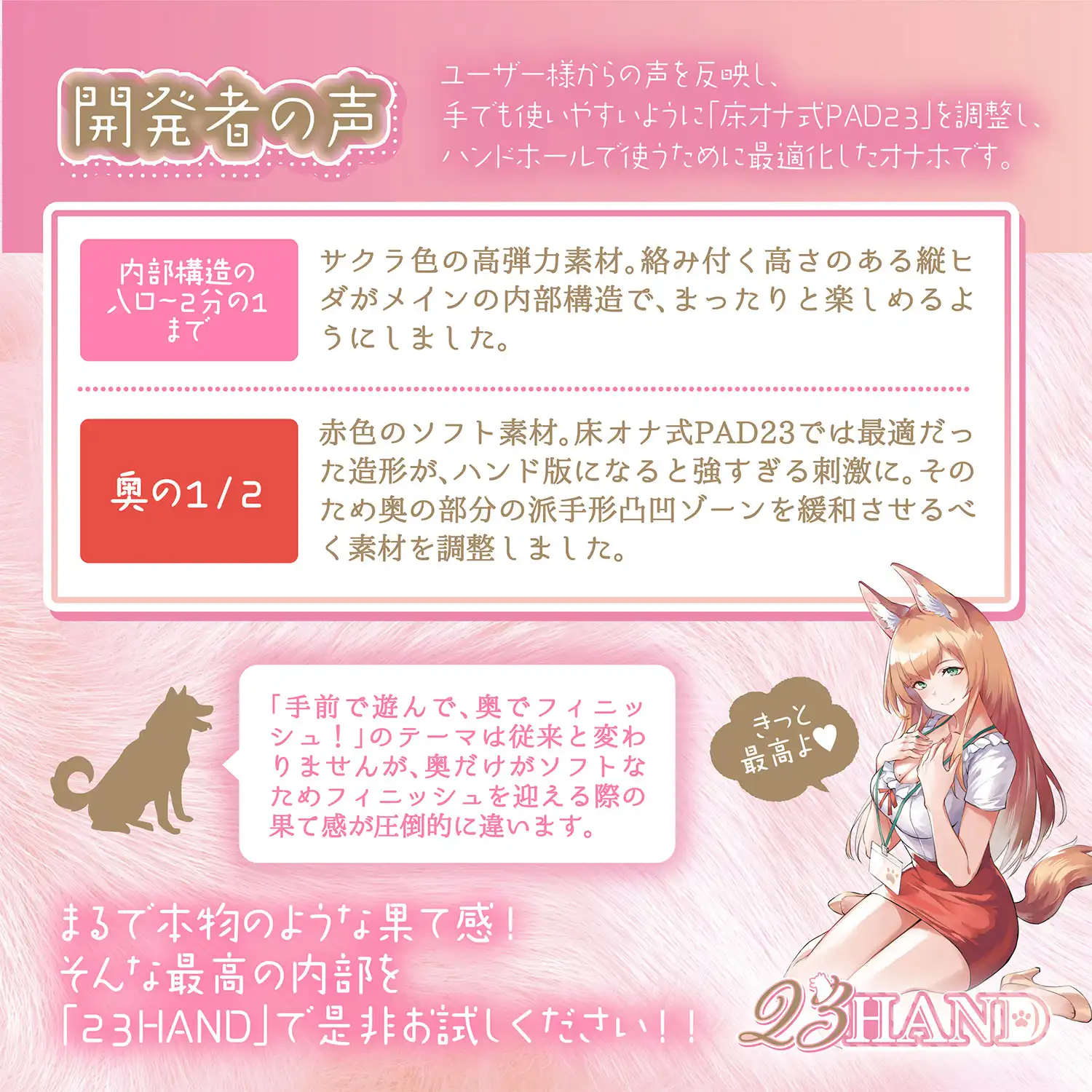 The internal structure of the Yuka-Ona Style PAD23 has been specially redesigned for use as a hand-held onahole. Introducing the 23HAND!